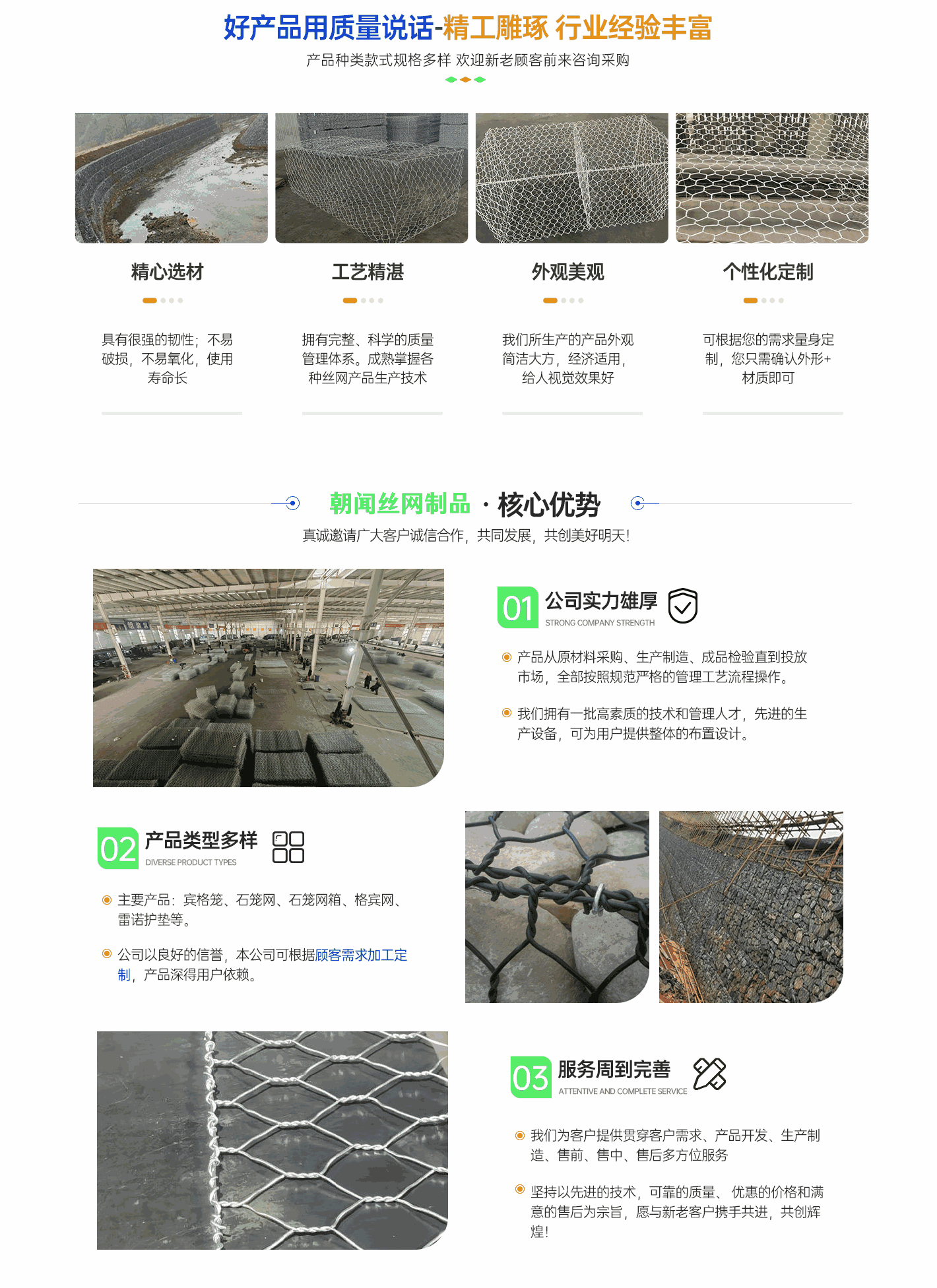 深州市朝聞絲網制品有限公司擁有“中國絲網之鄉”美譽的河北省致力于生產銷售格賓網,雷諾護墊,景觀石籠網,邊坡防護網,綠濱墊,固濱籠的廠家,規格多種多樣。  我廠堅持技術創新、科學管理、誠信經營,注重引進新型生產技術設備,推行標準化生產,采用質量管理體系,從原材料采購、生產管理、產品檢測等關鍵環節嚴格把關,確保了產品質量,贏得了客戶的信賴。我公司秉承“誠信、務實、高效”的企業宗旨,真誠希望與世界各地客戶互惠互利,共創美好未來!多年來"以誠立廠","以質興業"。 憑借過硬的質量、良好的信譽、優質的服務、合理的價格不斷拓展市場,誠摯的希望在平等互利,坦誠相待的基礎上與國內外客戶長期合作!...